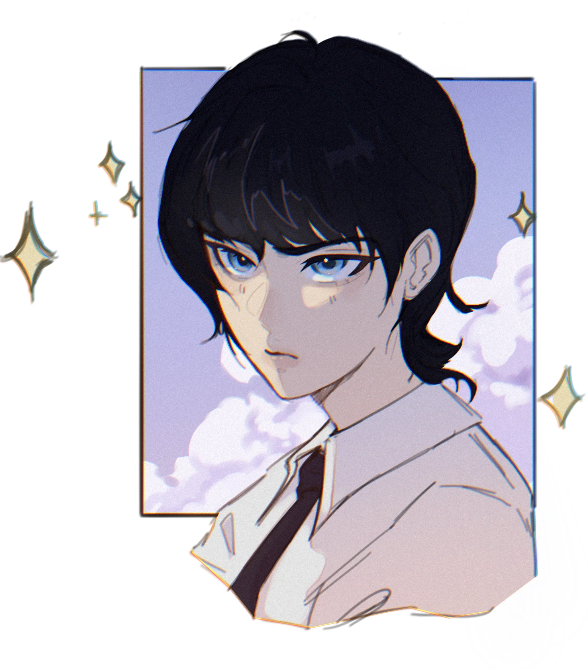 This piece began as a sketch of a woman drawn in an anime-inspired style. I focused on mood and color rather than realism, using the purple window as a framing device to create a quiet, contemplative atmosphere. The work reflects my interest in character-focused illustrations and expressive color palettes.
